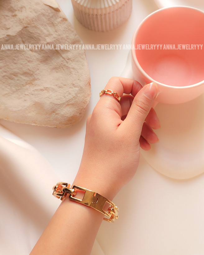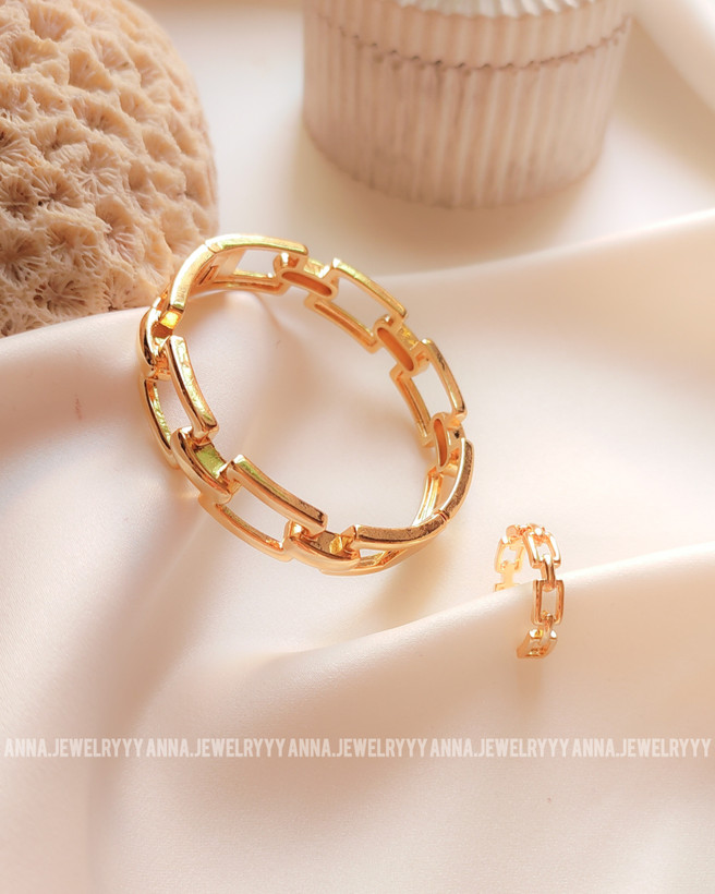 نیم ست بنگل و انگشتر طرح زنجیر استیل