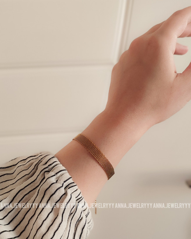 دستبند حصیری استیل طلایی طرح طلا