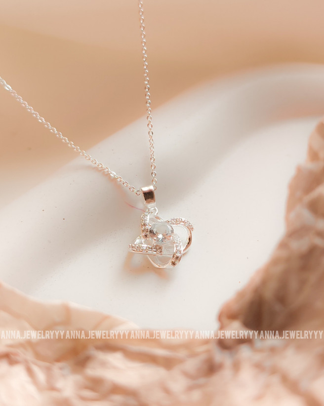 گردنبند گل نگین آبی آبکاری نقره ظریف