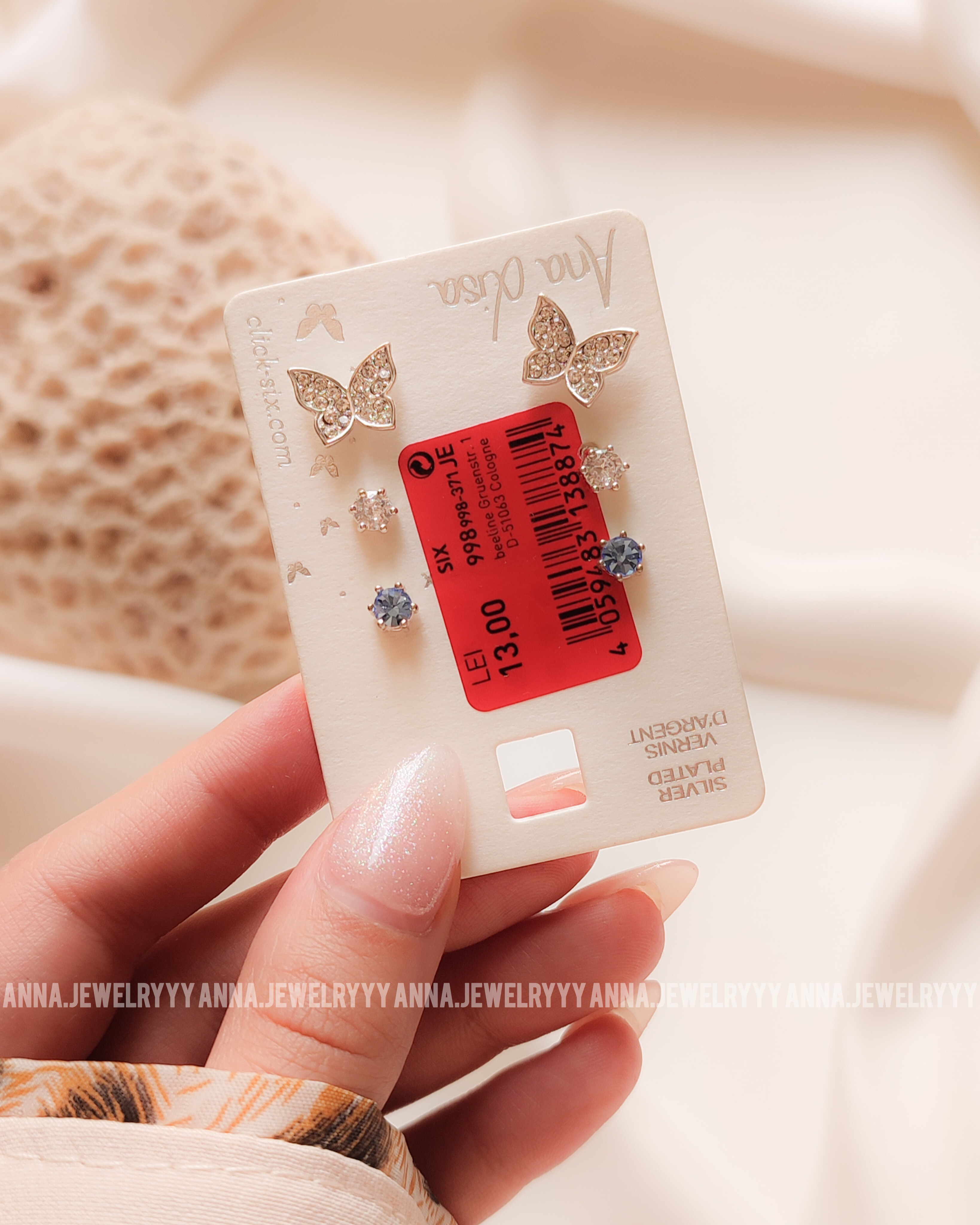 پک گوشواره آبکاری نقره ظریف پروانه