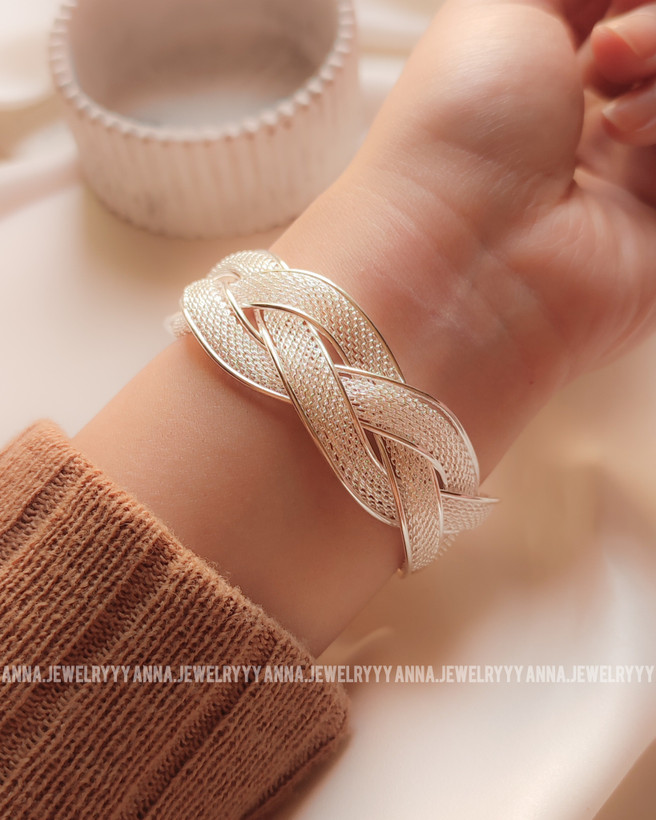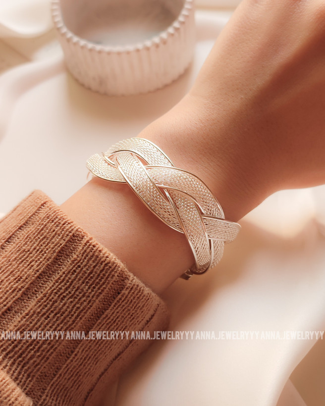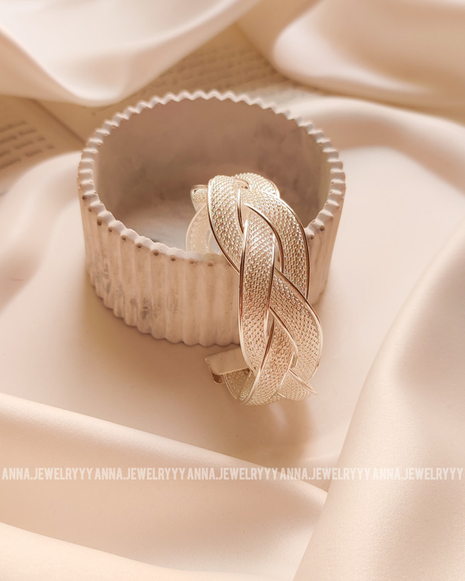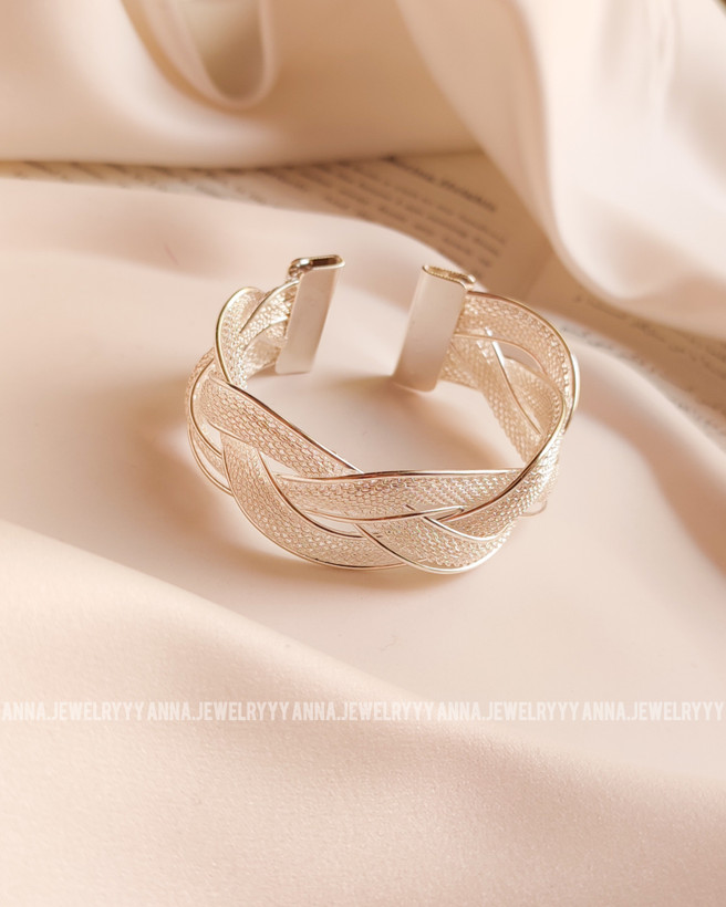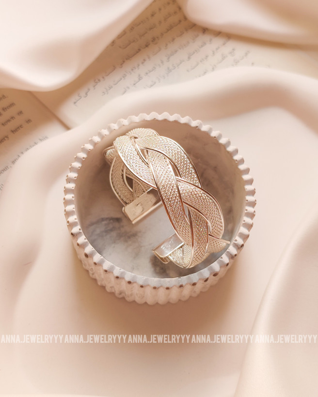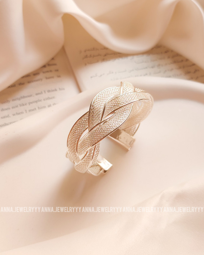 بنگل آبکاری نقره طرح بافت فری سایز زنانه